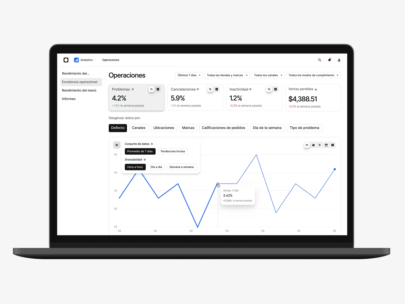 Identifica fácilmente oportunidades para mejorar cada área de tu negocio, desde el desempeño, hasta las operaciones, los menús y mucho más.