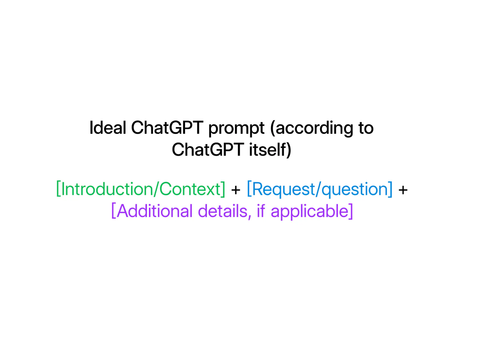 While there isn't a one-size-fits-all formula for crafting the perfect ChatGPT prompt, you can follow a simple structure to increase your chances of receiving relevant responses. ChatGPT itself suggests the following approach: