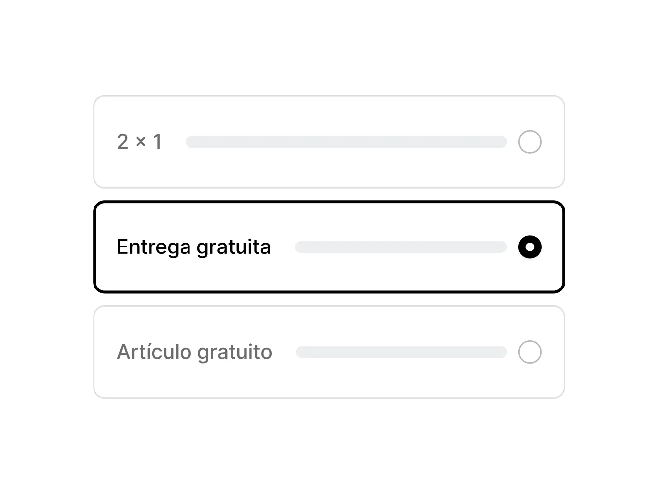 - Artículo gratis con la compra: significa que si tu cliente pide determinados artículos o gasta cierta cantidad en la plataforma, recibirá uno o más artículos adicionales gratis como parte de la promoción.