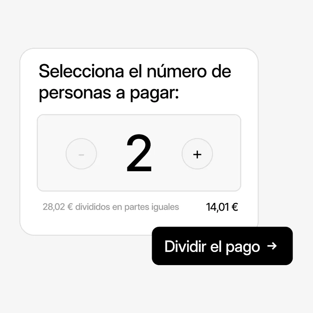 Facilita a los grupos la división de la cuenta sin necesidad de que un camarero lo haga manualmente.