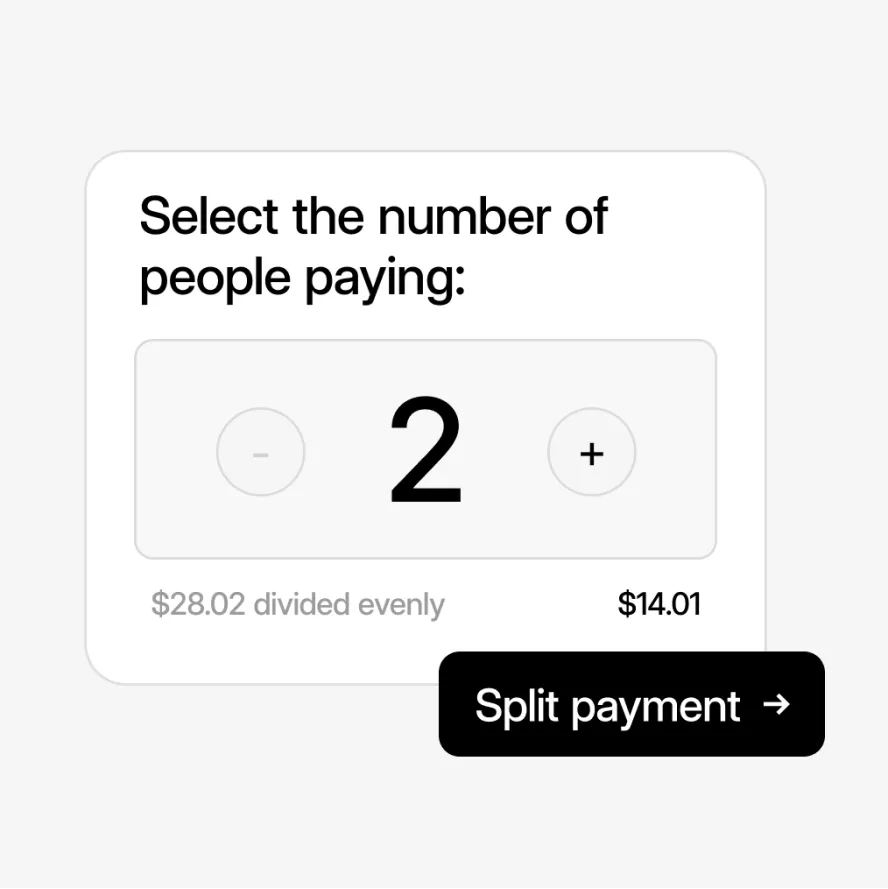 Make it easy for groups to divvy up the check without needing a server to do it manually.