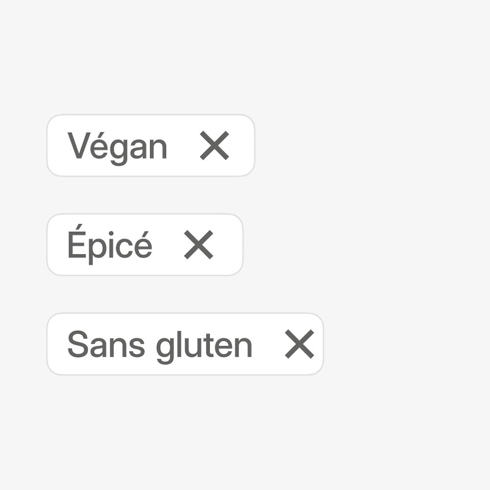 Vegan, épicé, sans gluten... L'étiquetage des articles du menu accélère les ventes, permettant aux clients de passer commande sans avoir à poser de questions.