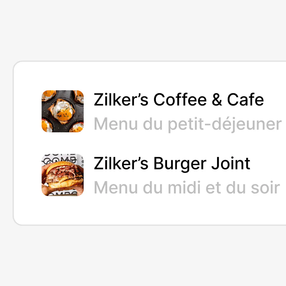 Configurez plusieurs menus pour un seul établissement. Cela signifie que vous pouvez désormais configurer des menus spécifiques pour le petit-déjeuner, le déjeuner, le dîner, etc. directement depuis votre tableau de bord.