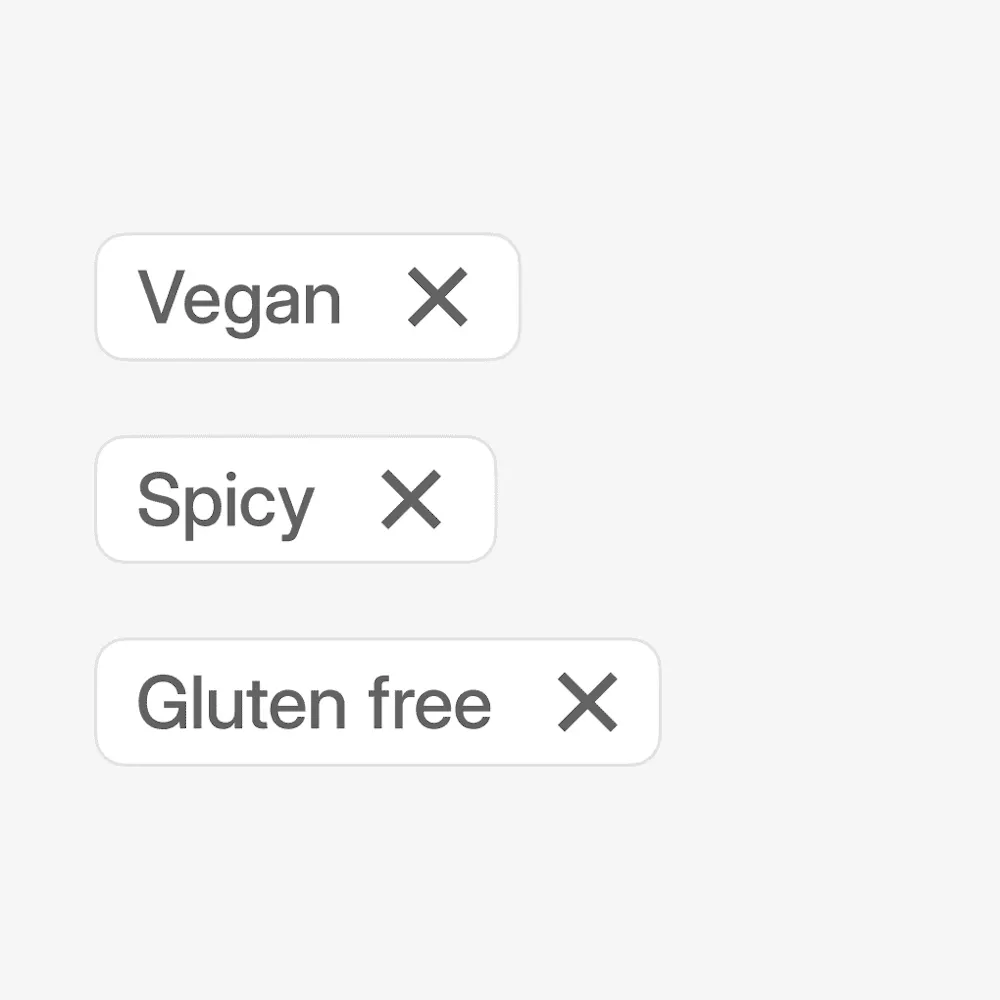 Vegano, picante, sin gluten... etiquetar los elementos del menú te ayuda a vender comida más rápido cuando los clientes saben lo que van a comer sin tener que preguntar.