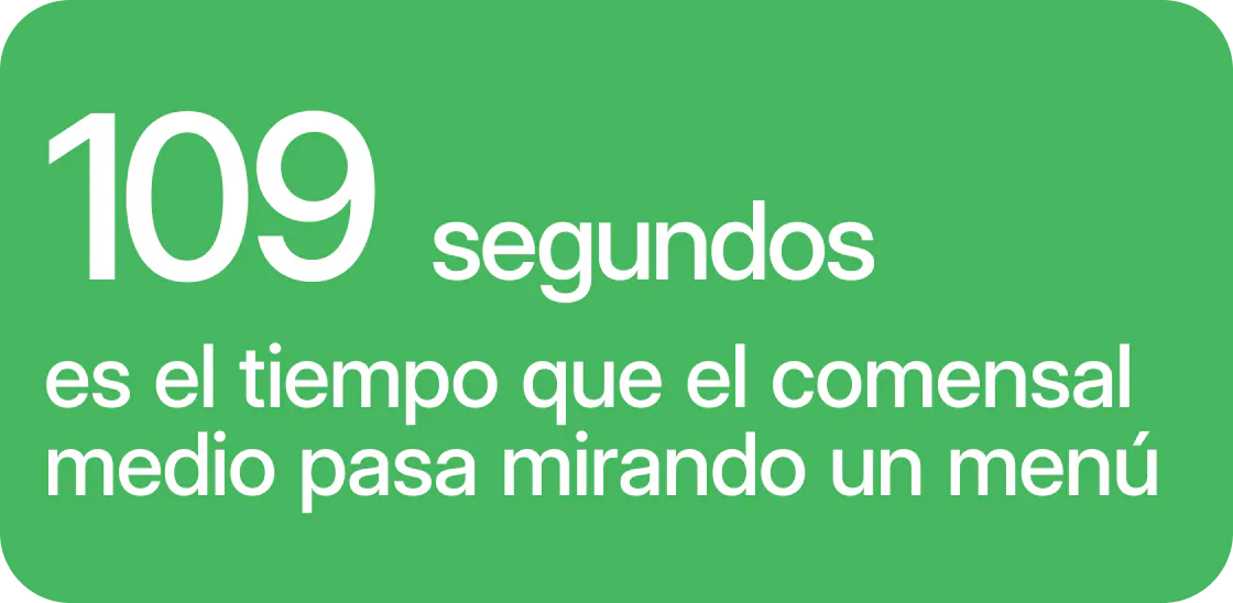 - El comensal medio pasa solo 109 segundos mirando cada menú. ¡Pon tus bestsellers arriba!