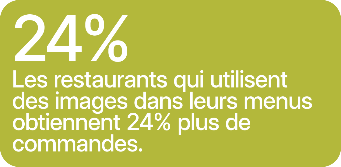 - Les restaurants qui utilisent des images dans leur menu sur les applications de livraison enregistrent jusqu'à 24 % de commandes en plus que ceux qui ne le font pas