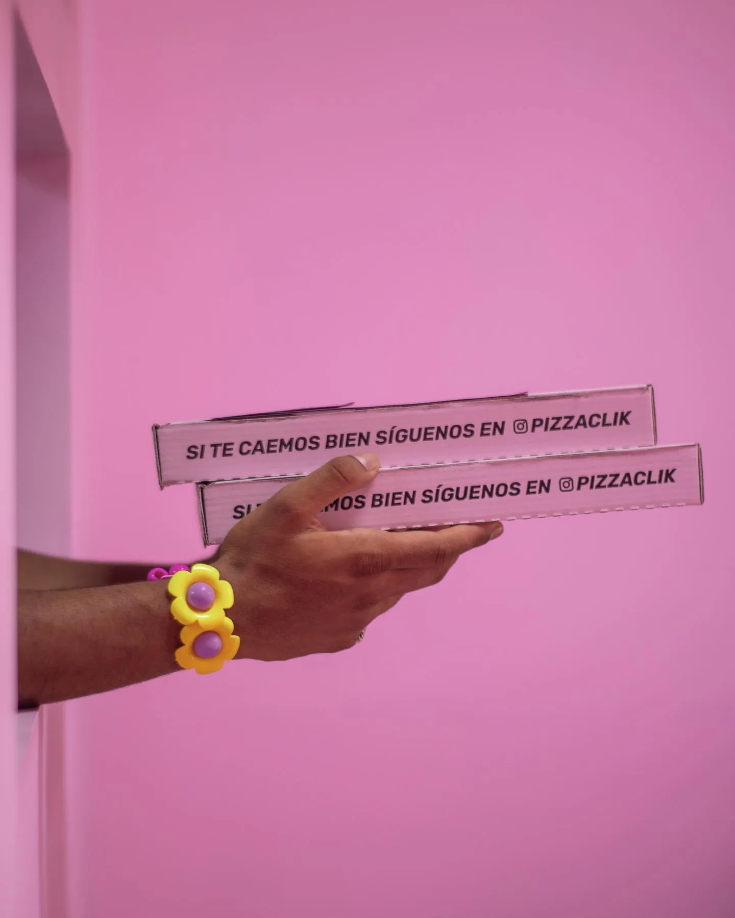 Esta experiencia trasciende más allá de lo digital. El packaging de PizzaClik (también rosa) es otra de las extensiones de su personalidad. Frases divertidas, cajas de acompañantes que parecen paquetes de cigarrillos e incluso una que otra notificación de Hacienda para asustar a sus clientes en Halloween. PizzaClik entiende que la competencia en las plataformas de delivery es feroz, por lo que es necesario diferenciarse con experiencias inolvidables.