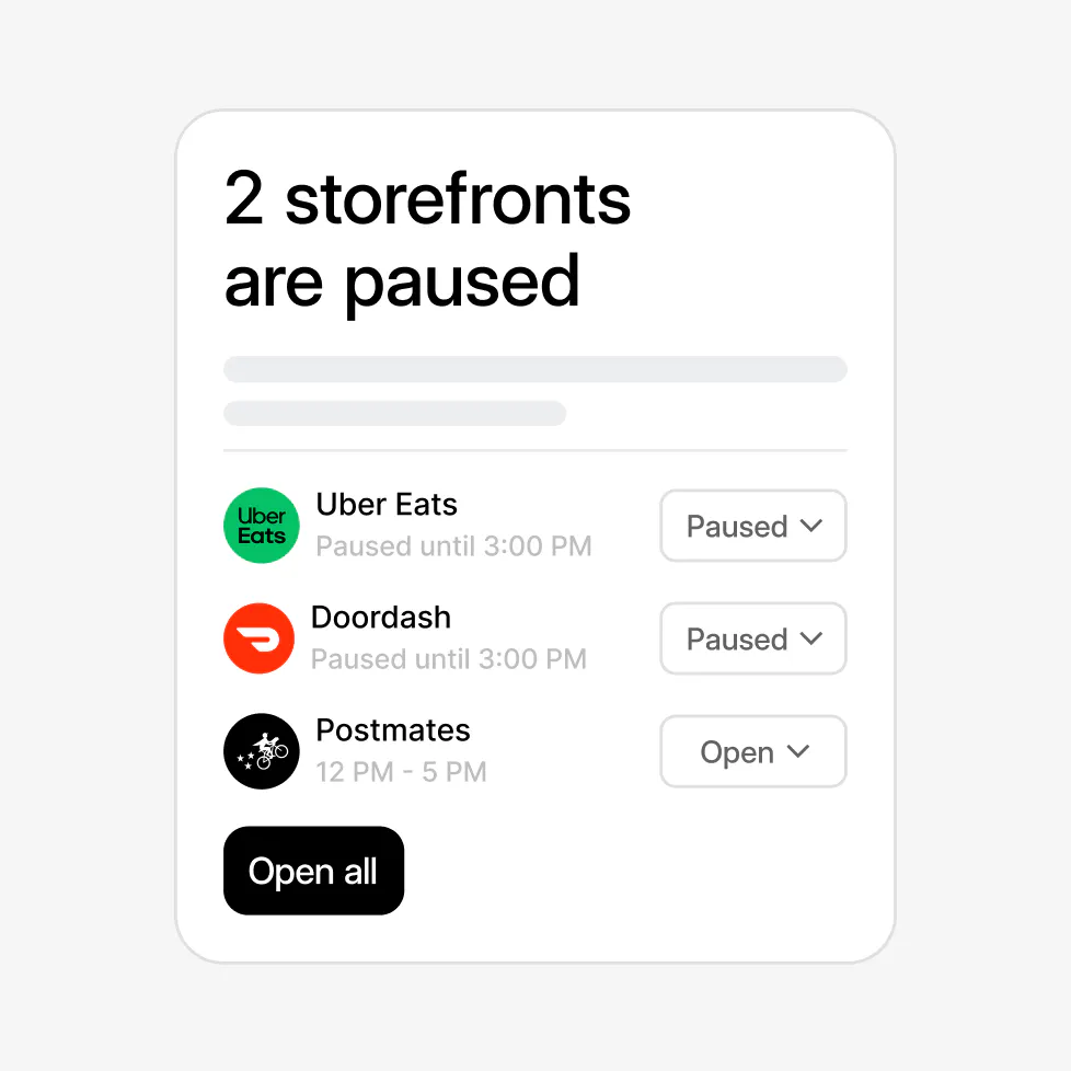 Overwhelmed by the lunch rush? Pause your store to catch up or change prep time estimates. Easily unpause when you’re ready for more orders.