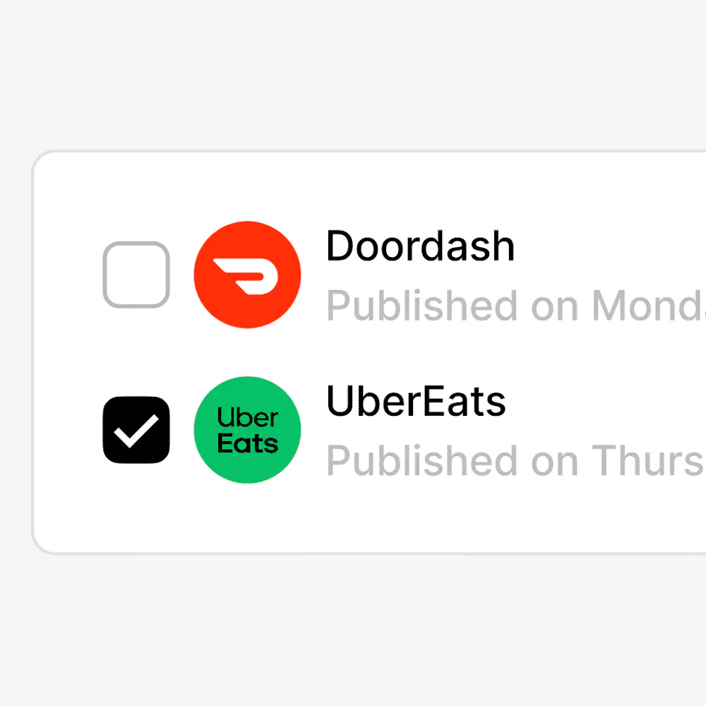 Make changes once and send them to all your delivery services in one-click. Save time and keep all of your menus in sync.
