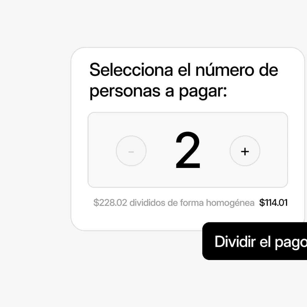 Facilita a los grupos la división de la cuenta sin necesidad de que un mesero lo haga manualmente.