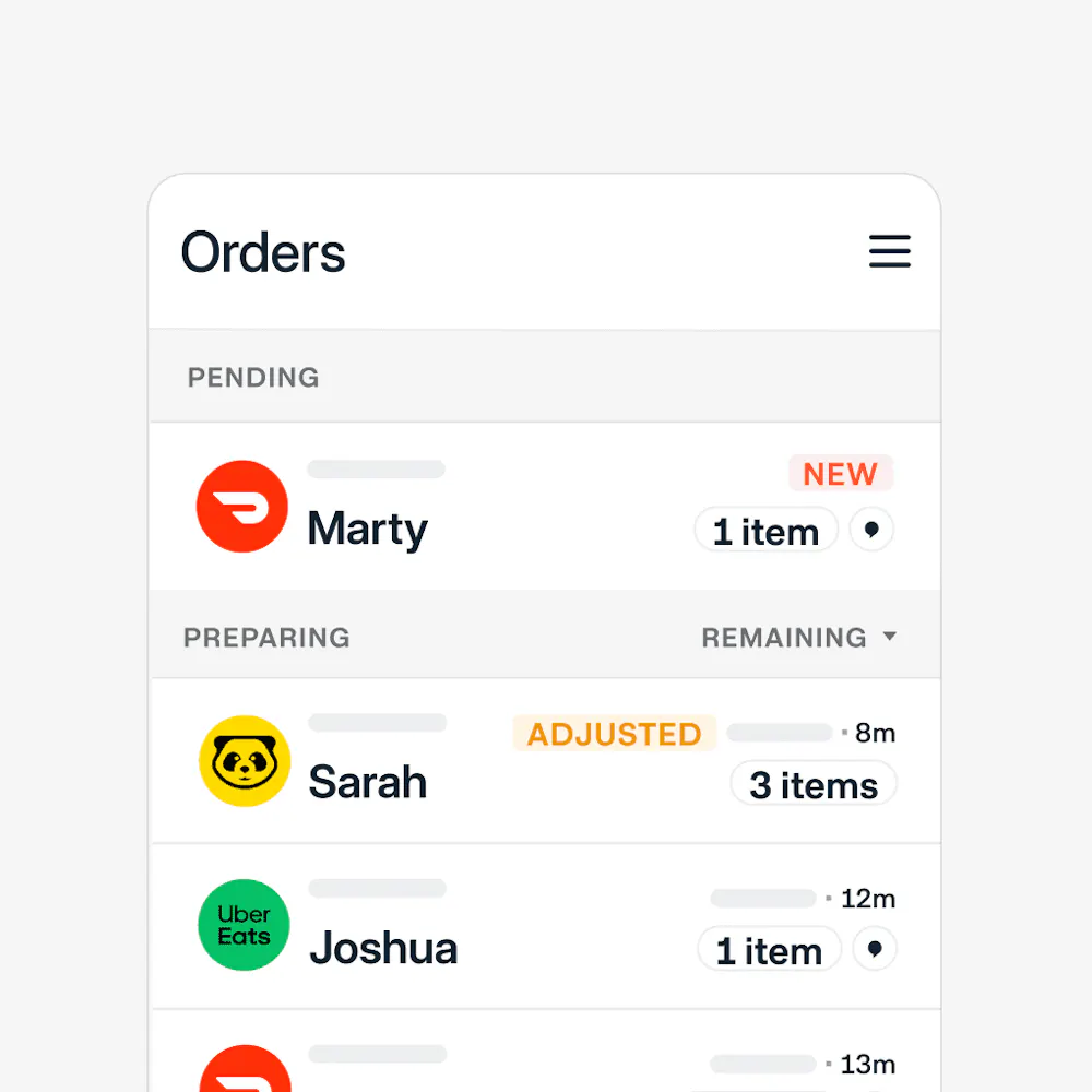 Accept delivery orders as usual across all your online ordering platforms. Otter tracks them all.