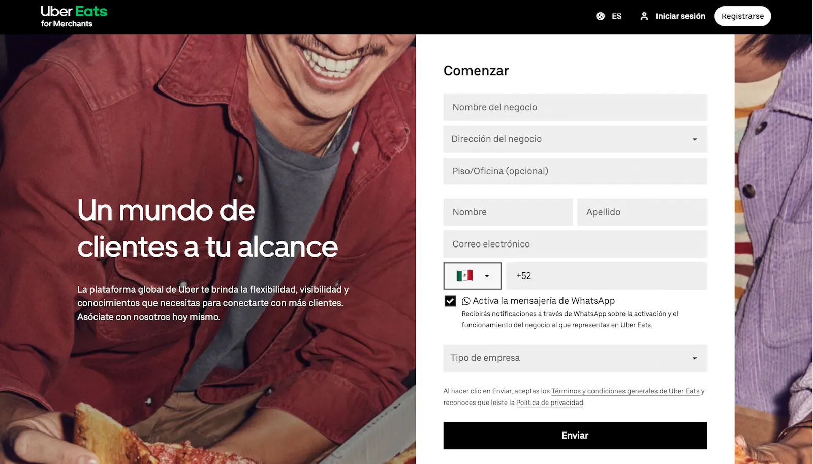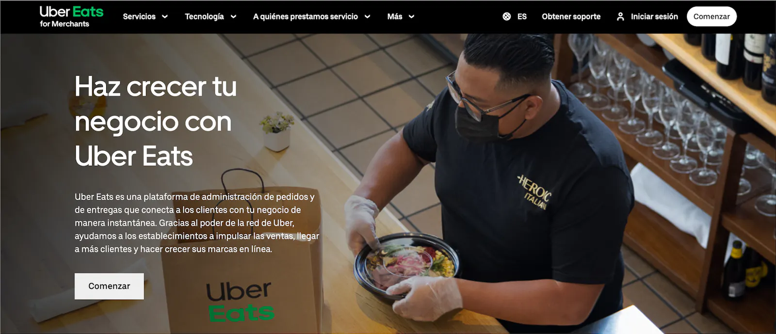 1. Ve al sitio web de Uber Eats Merchant y haz clic en "Comenzar"