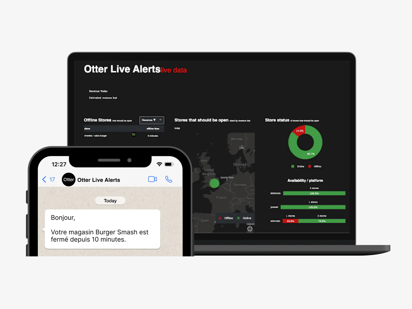 La solution suivi en direct permet au siège de suivre l'activité et le temps de fonctionnement de nos restaurants. Notre personnel a pris conscience de l'importance d'ouvrir et de fermer le magasin à la bonne heure. Grâce à Otter, nous avons atteint un taux de disponibilité de 98 % sur les plateformes de livraison