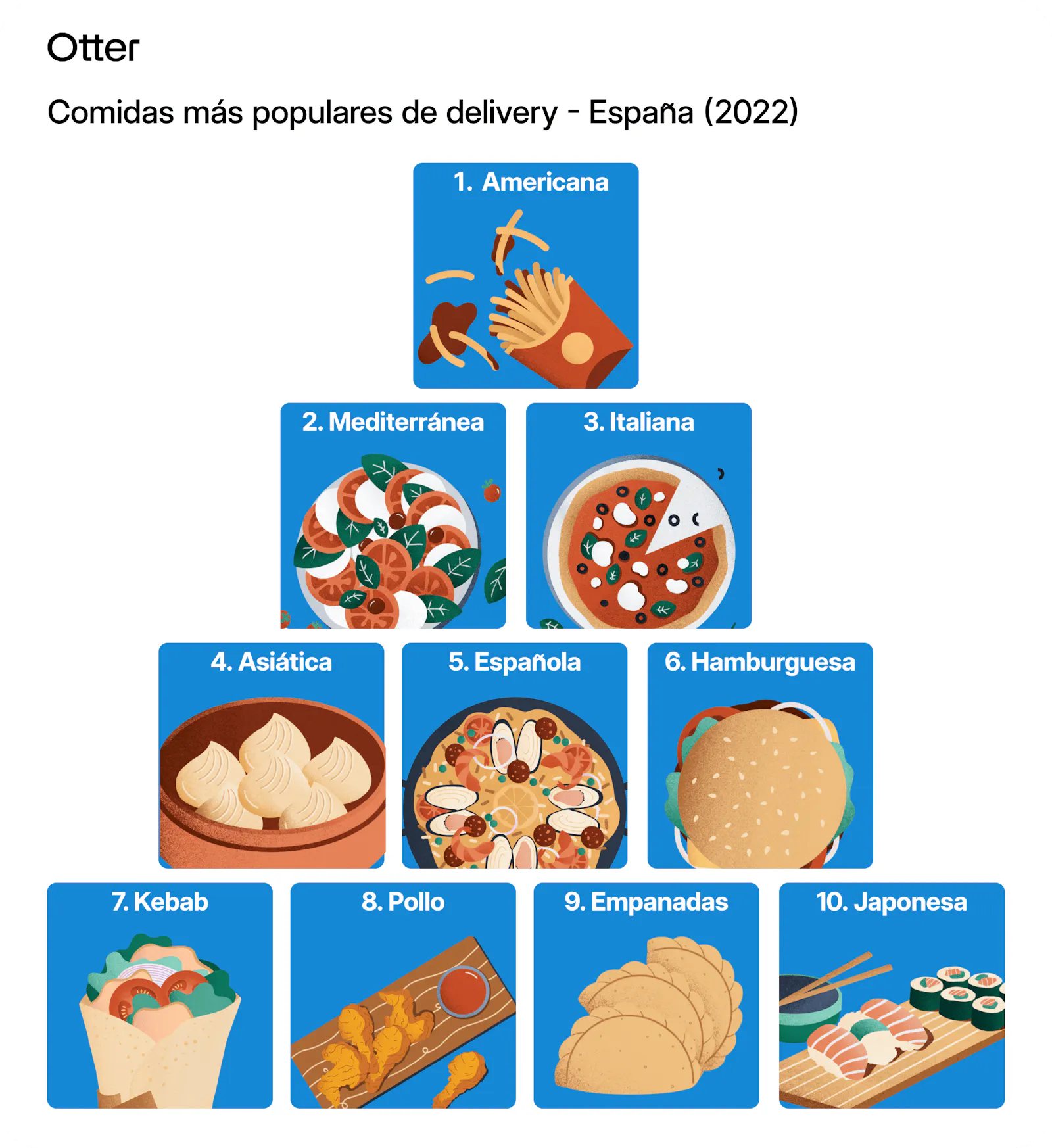 En Otter profundizamos en los principales datos del delivery para que restauradores como tú puedan estar al tanto de las principales tendencias y cambios del sector. Analizamos más de un millón de pedidos a domicilio en España para ofrecerte información exclusiva sobre qué, cómo y cuándo piden los españoles.