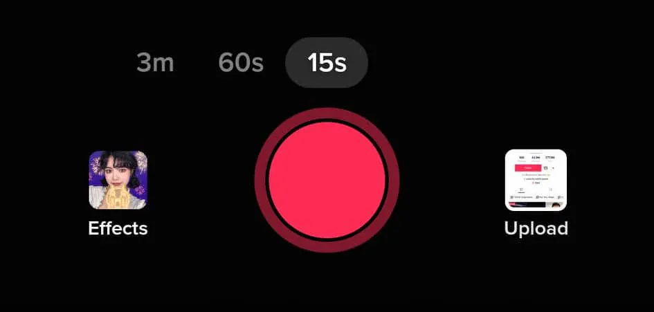 To create your content using the TikTok camera, press the Record button and start recording your content.