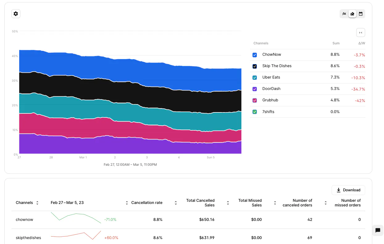 Like the previous tab, you can organize this information by timeframe, store, order channel, and more! This tab is great for helping you identify and correct operational issues. The Operations tab is only available to Advanced Analytics and Pro users.